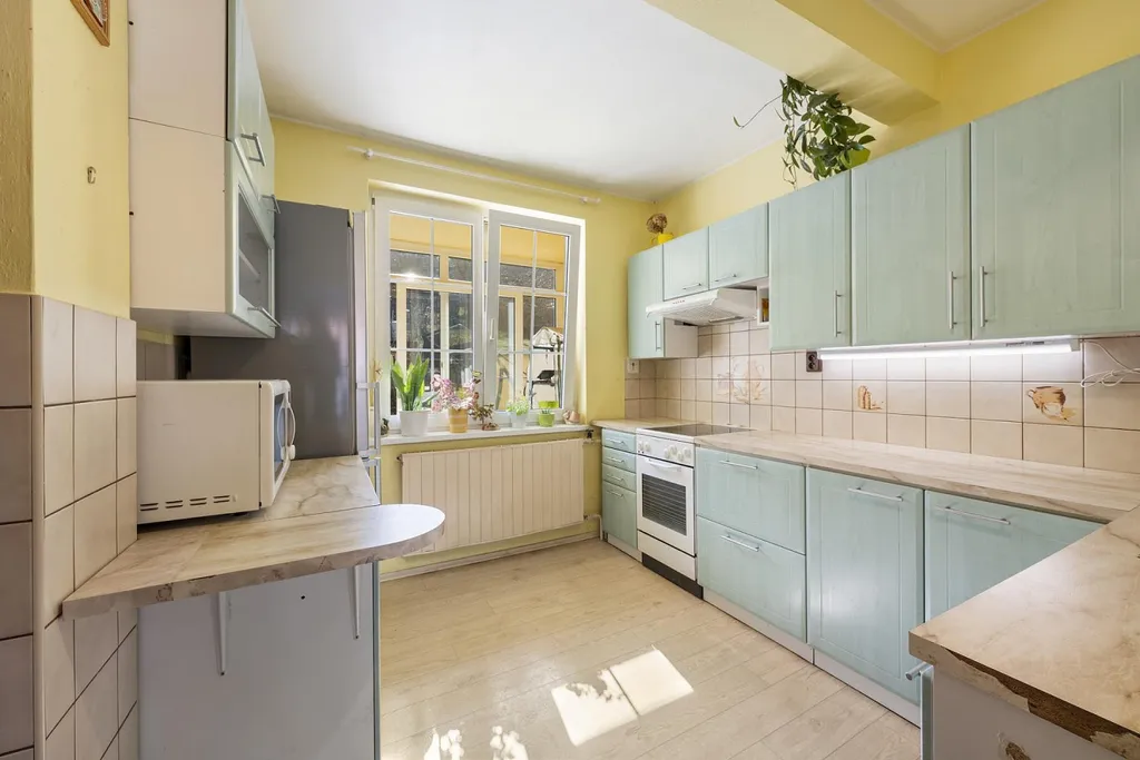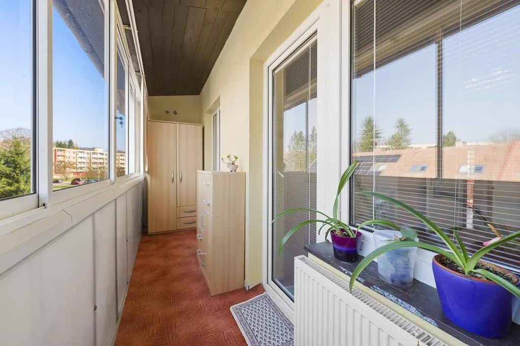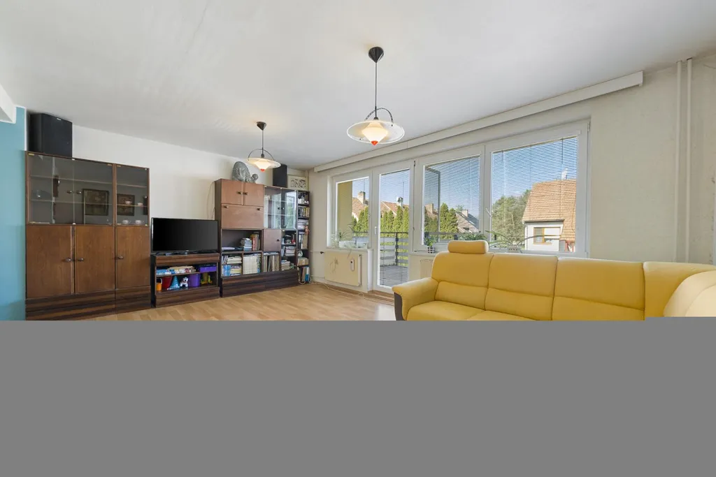 V patře se nachází prostorná kuchyň, jídelna s obývacím pokojem a výstupem na terasu, samostatné WC a přechodová místnost se zasklením a výstupem do zahrady. Poslední patro domu nabízí dva pokoje, z nichž jeden je průchozí, a dvě samostatné ložnice, obě s výstupem na zasklenou lodžii.