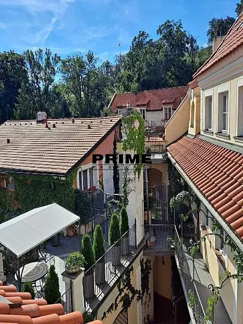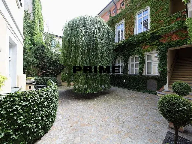 Prostorný, 3 ložnicový, nezařízený byt se 2 koupelnami k pronájmu, 4+1, 178m2, s jižně orientovanou terasou o výměře 35m2, situovaný ve 2. patře kompletně zrenovovaného historického domu s výtahem a malebným zeleným nádvořím s fontánami.