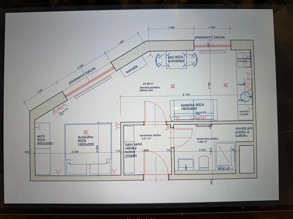 Velkou výhodou je západní orientace bytu, která zajišťuje dostatek přirozeného světla v odpoledních hodinách, a zároveň předokenní žaluzie pro regulaci světla i soukromí.