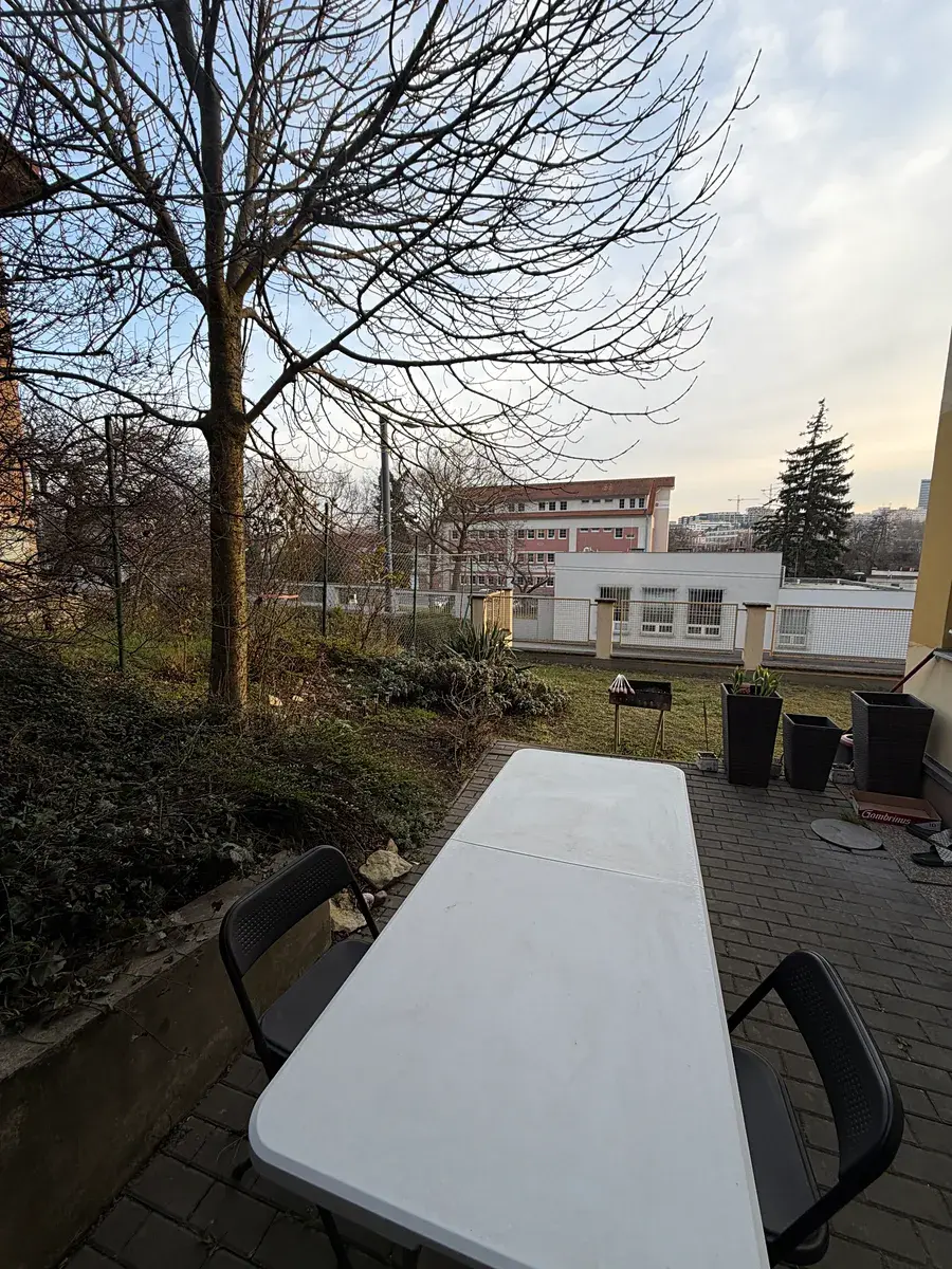 Tento byt je výjimečný především svou jižní orientací, díky které je po celý den krásně prosluněný a velmi příjemný k bydlení. Dalším unikátním prvkem je velkorysý venkovní prostor, který v širším centru Prahy jen tak nenajdete. K bytu o ploše 37 m² náleží 21 m² vydlážděné terasy a navazující zahrada o velikosti 76 m², která nabízí obrovský potenciál pro další úpravy a vytvoření skutečně výjimečného venkovního zázemí.
