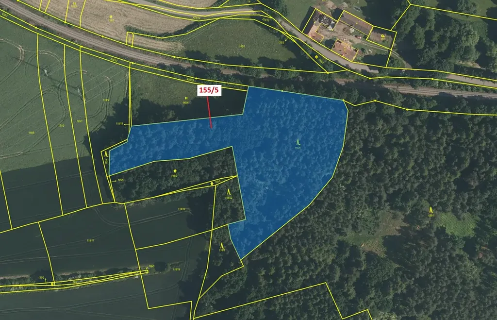 Lesní pozemek o výměře 11 172 m2, parcelní číslo 155/5, podíl 1/1, katastrální území Horní Nerestce, obec Nerestce, obec s rozšířenou působností Písek, okres Písek, Jihočeský kraj. Částečně po těžbě.