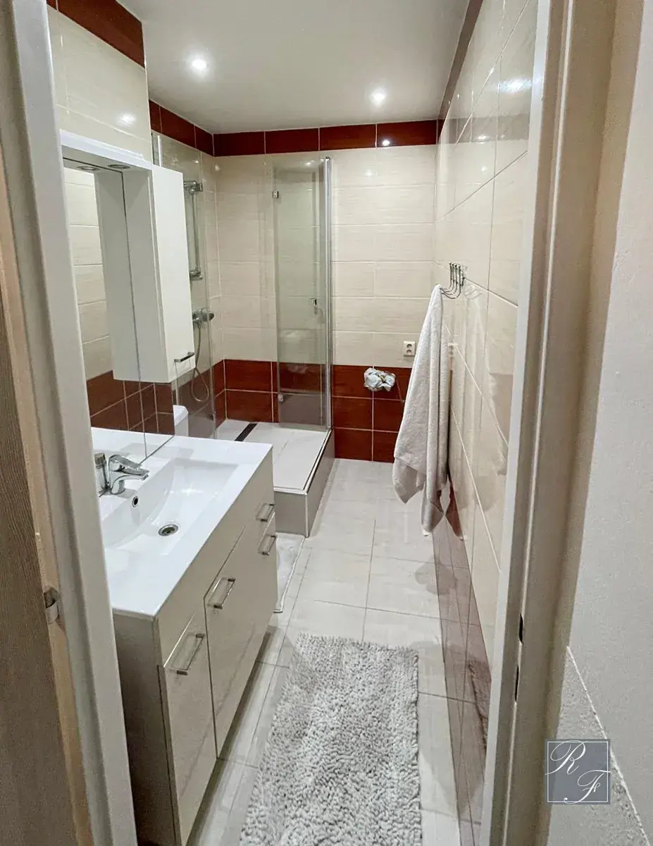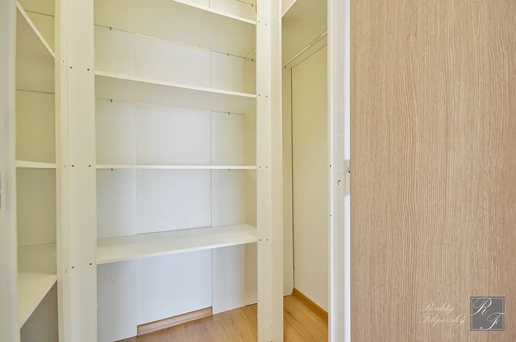 Bytová jednotka má zděné jádro, kuchyňskou linku vybavenou myčkou nádobí a velmi se mi líbí prostorná lodžie s výhledem do zeleně. Velkou výhodou je také šatna, i předsíň s vestavnou šatní skříní.