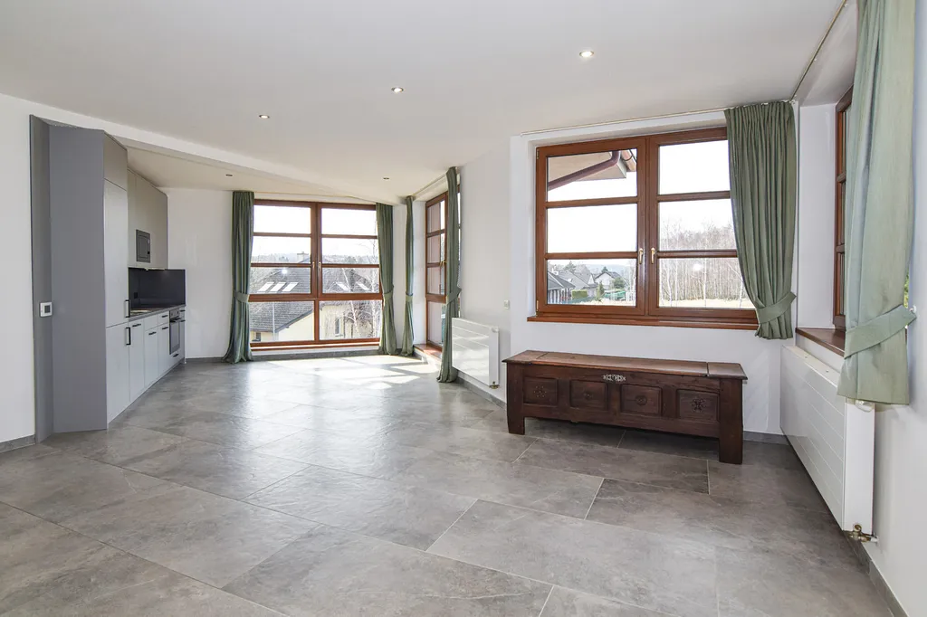 V přízemí se nachází prostorná předsíň s komorou pod schodištěm. Dispozice bytu je praktická a díky velkoformátovým oknům je celý prostor nádherně prosvětlený s výhledy do okolní přírody.
