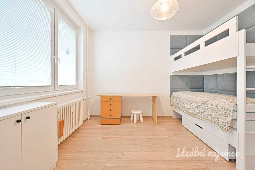 Byt se nabízí částečně vybavený dle fotografií. Kuchyně disponuje lednicí, elektrickou troubou, varnou deskou a digestoří. Obývací část je zařízena kvalitní pohovkou italské výroby, konferenčním stolem, televizí a jídelním setem. Součástí ložnice je postel a skříň. V dětském pokoji najdeme postele a šatní skříň. V posledním pokoji je vestavěná skříň.