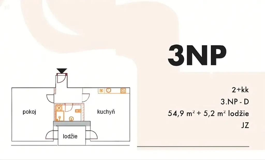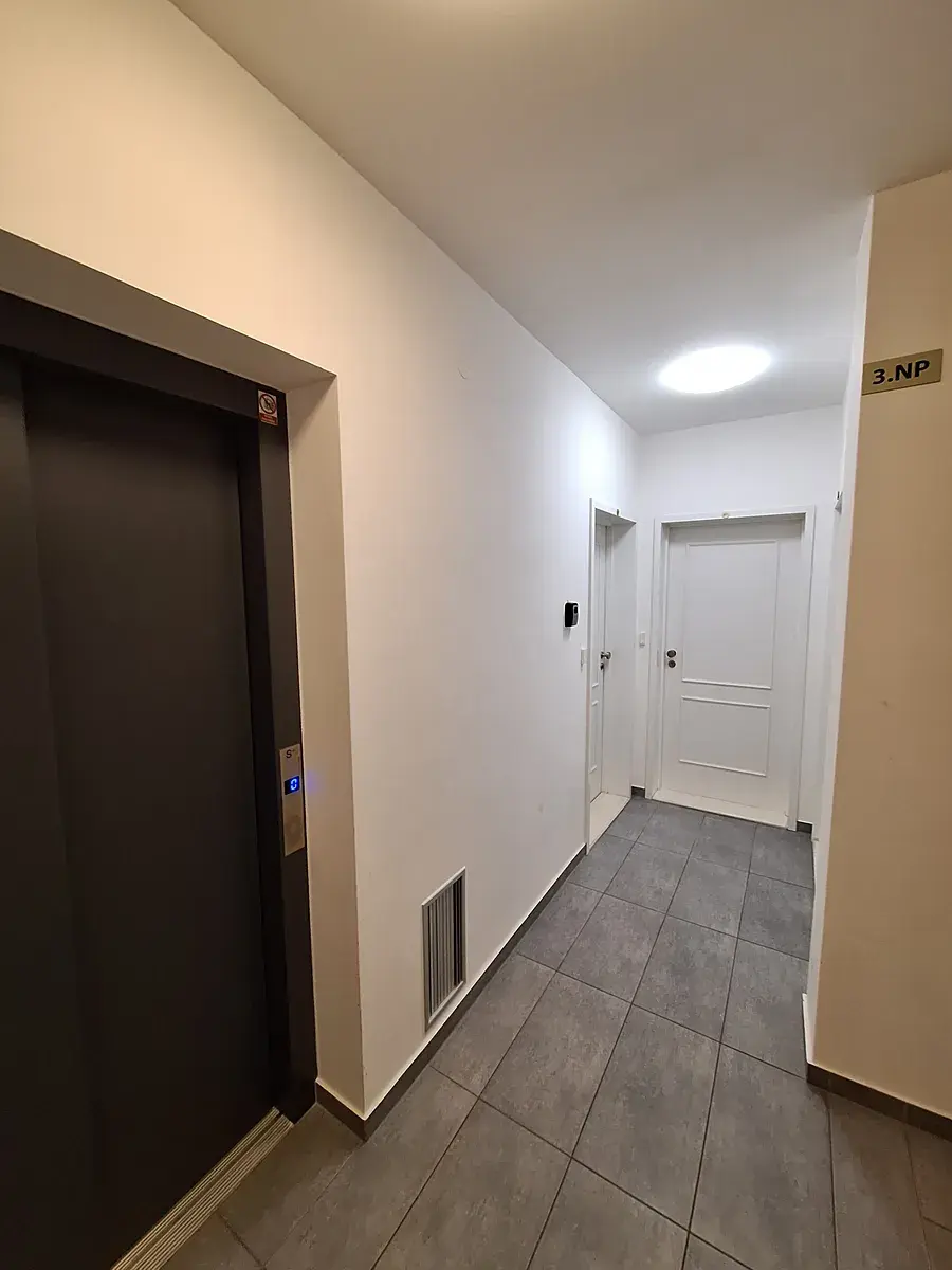 Byt ve 2. patře má vstupní chodbu, koupelnu se sprchovým koutem a WC, pračka se sušičkou. Pokoj s kuchyňskou linku a výstupem na balkón. Dále druhý neprůchozí pokoj, také s přístupem na lodžii. Pěkné moderní bydlení v příjemné prémiové části Prahy.