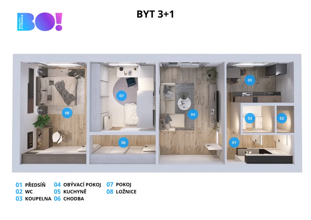 Zajímavostí této nabídky je možnost prohlédnout si budoucí podobu rekonstrukce také pomocí 3D brýlí, díky kterým si můžete lépe představit potenciál celého bytu už při osobní prohlídce.
