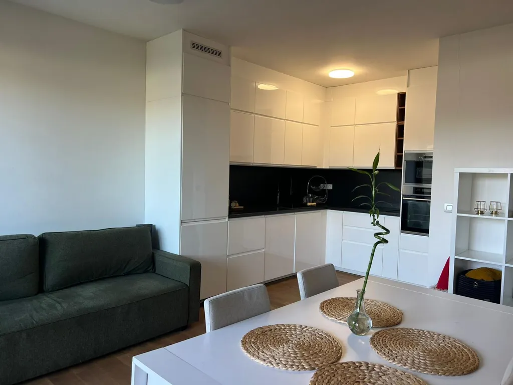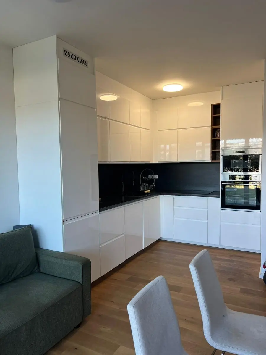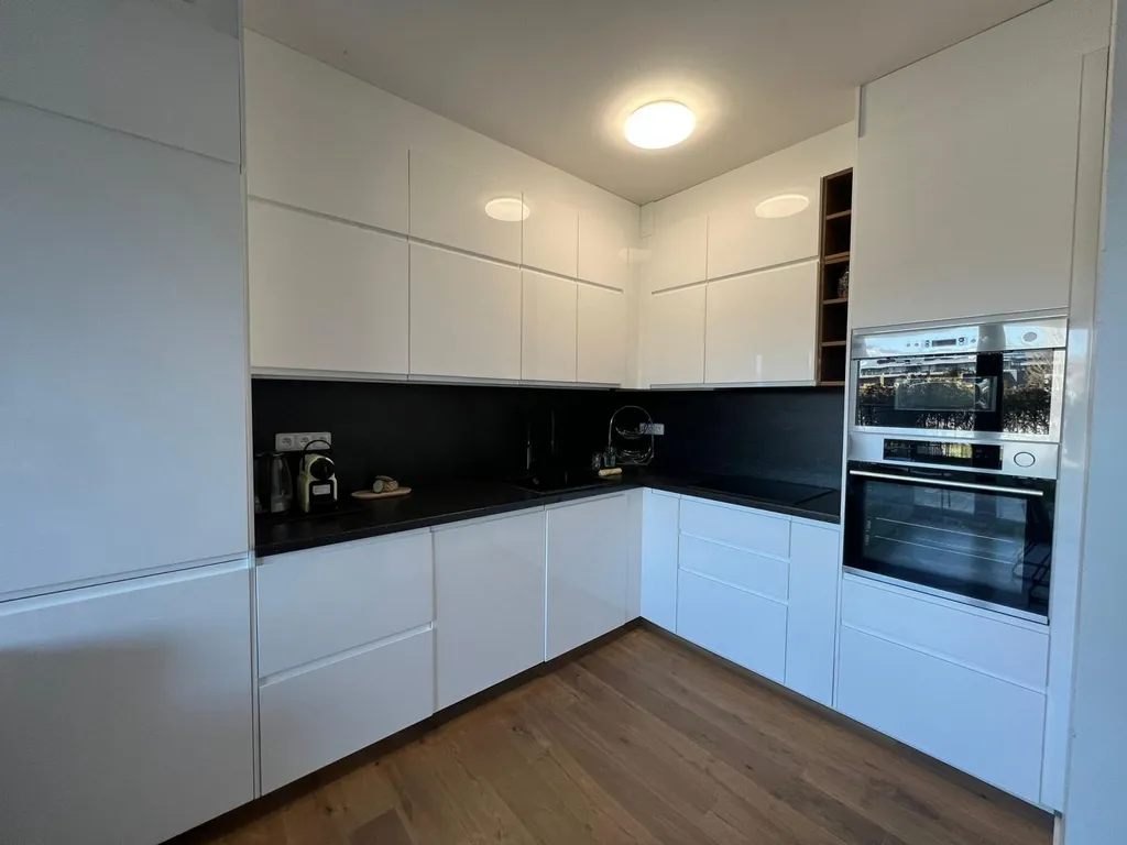 Byt je kompletně zařízený moderním nábytkem a spotřebiči a připraven k okamžitému nastěhování.