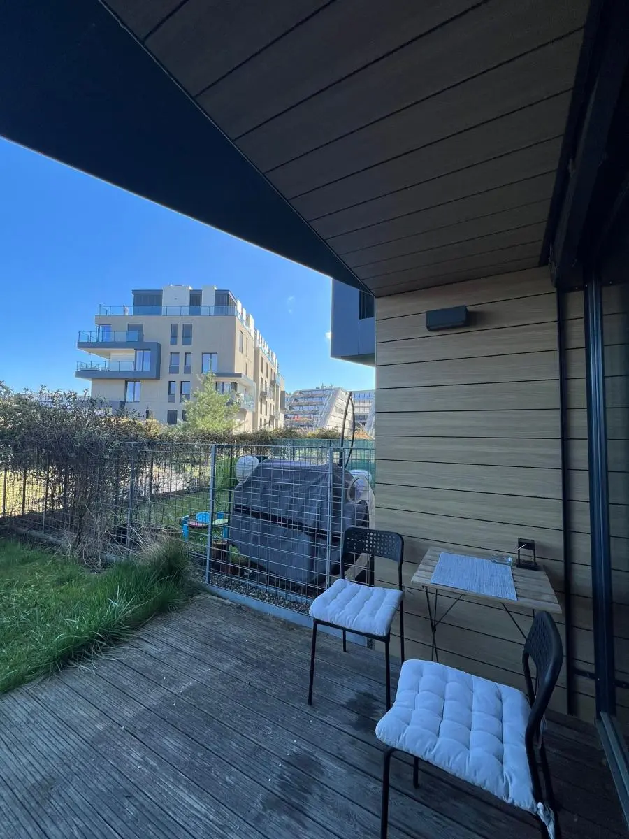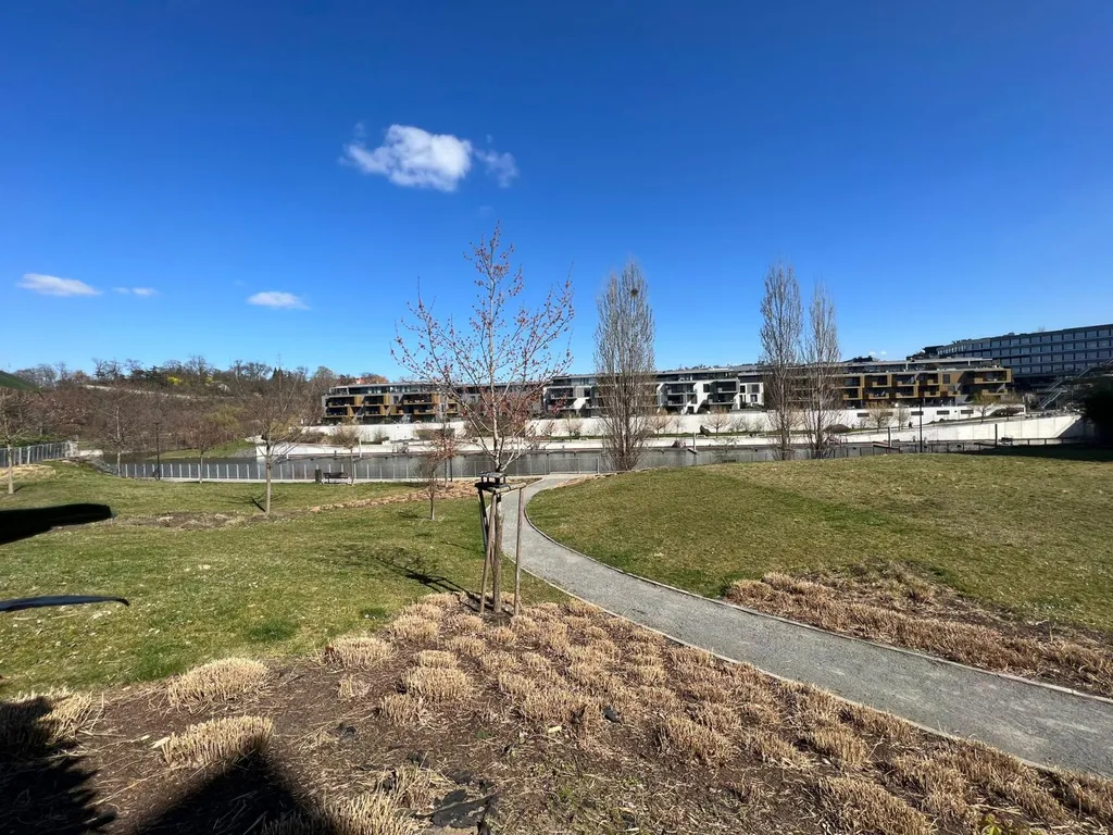 Nabízíme k pronájmu stylový byt 2+kk se soukromou zahradou v prestižní rezidenci Dock, Praha 8.