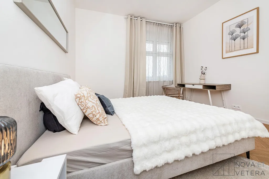 Byt aktuálně prochází kompletní a kvalitní rekonstrukcí a bude připraven k nastěhování v červnu 2026. Rekonstrukce zahrnuje nové rozvody elektřiny, vody a odpadů, moderní dřevěné podlahy, obklady a dlažbu italské značky Marazzi a koupelnu se sanitou značky Grohe. Součástí bytu bude také nová kuchyňská linka vybavená vestavnými spotřebiči prémiové značky Bosch s prodlouženou zárukou 5 let.