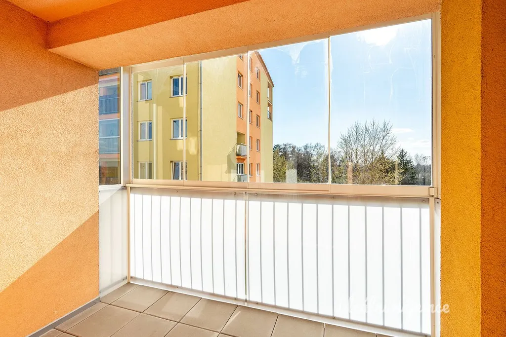 Dispozičně byt nabízí prostornou předsíň , komoru s policemi i plně vybavenou koupelnu včetně pračky. Hlavní dominantou je obývací pokoj s kuchyňskou linkou ve které jsou všechny potřebné spotřebiče. Obývací pokoj je spojen s prostorným balkonem, který nabízí nádherný výhled třeba i k večernímu posezení. Druhou místností je pokoj, který nabízí úložné prostory v podobě skříní a police.