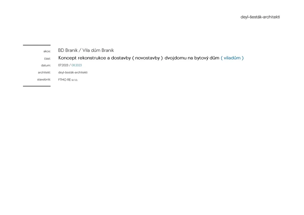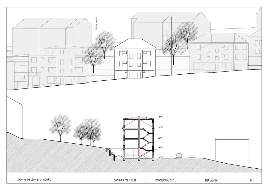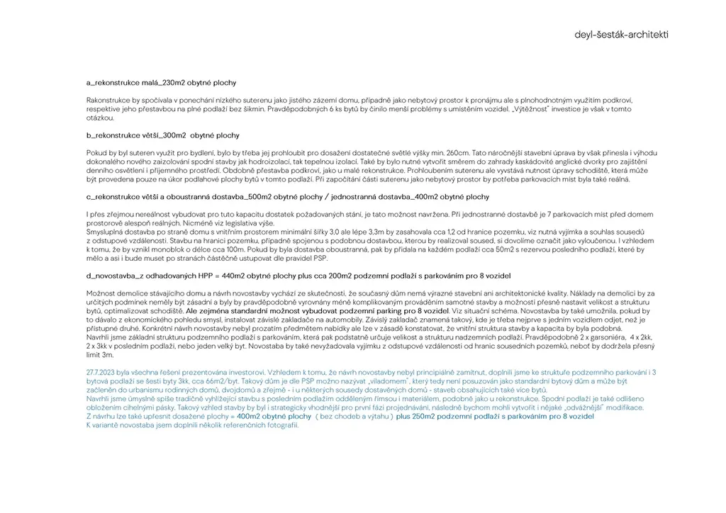 Součástí nabídky jsou rovněž architektonické studie na rekonstrukci či dostavbu, které dávají jasnou představu o budoucím potenciálu objektu.