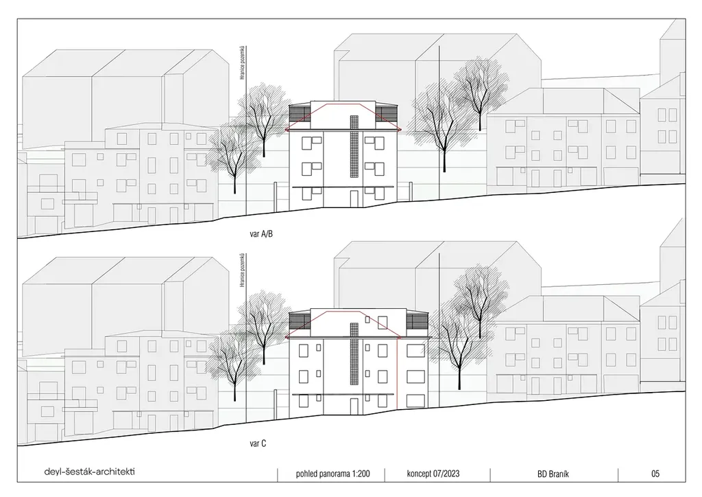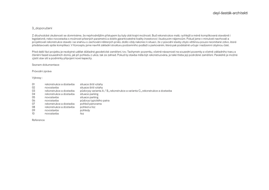 Součástí nabídky jsou rovněž architektonické studie na rekonstrukci či dostavbu, které dávají jasnou představu o budoucím potenciálu objektu.