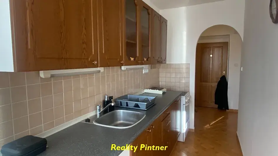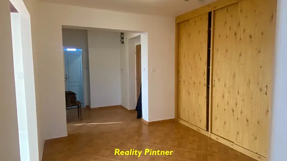 K pronajmutí nabízíme byt 4+1 s balkonem, kde v roce 2001 proběhla rekonstrukce. Byt se nabízí nezařízený, kde bychom v hale našli velkou vestavěnou šatní skříň a v kuchyni spížní skříň. Byt je bíle vymalovaný, na podlahách má keramické dlažby a parkety. Kuchyňská linka je vybavená elektrickým sporákem. V bytě je již elektřina v mědi a topení je dnes řešené elektrokotlem a ohřev vody bojlerem. Obytná plocha bytu je 88 m2 + balkon a v suterénu jsou k dispozici sklepy o celkové ploše 28,5 m2, kde je umístěn původní, již nepoužívaný kotel na TP a nový elektrokotel. Před domem je společný pozemek, kde je možné využívat část k zahradničení. Dům je situovaný na kraji obce v přírodě, ale 6 km od Příbramě a 2 km od nájezdu na dálnici D4. Podmínkou uzavření nájemní smlouvy je složení jistoty ve výši 20 tis. Kč, úhrada provize RK 15 tis. Kč a zaplacení prvního nájmu včetně záloh na služby. Elektřinu, komunální odpad, případně internet si nájemce napíše na sebe. Záloha na služby je ve výši 300 Kč/osoba a záloha 100 Kč/měsíc na společnou elektřinu. Byt je ihned k dispozici. ENB: G