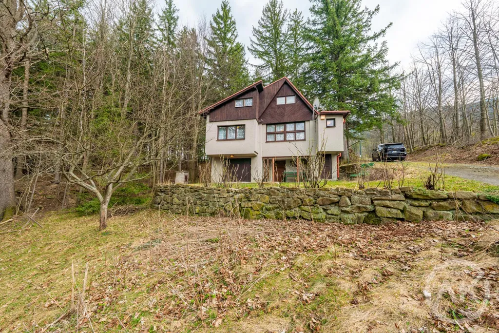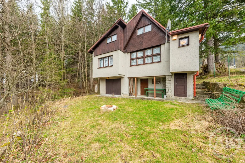 Na první pohled klasika. Přijedeš, koukneš a řekneš si, že je to prostě normální chata. Jenže pak se projdeš po pozemku o velikosti 1340 metrů a začne to dávat smysl. Soukromí, vlastní parkování, udírna, výhled do lesa a dole potůček, který tomu dává úplně jinou atmosféru.