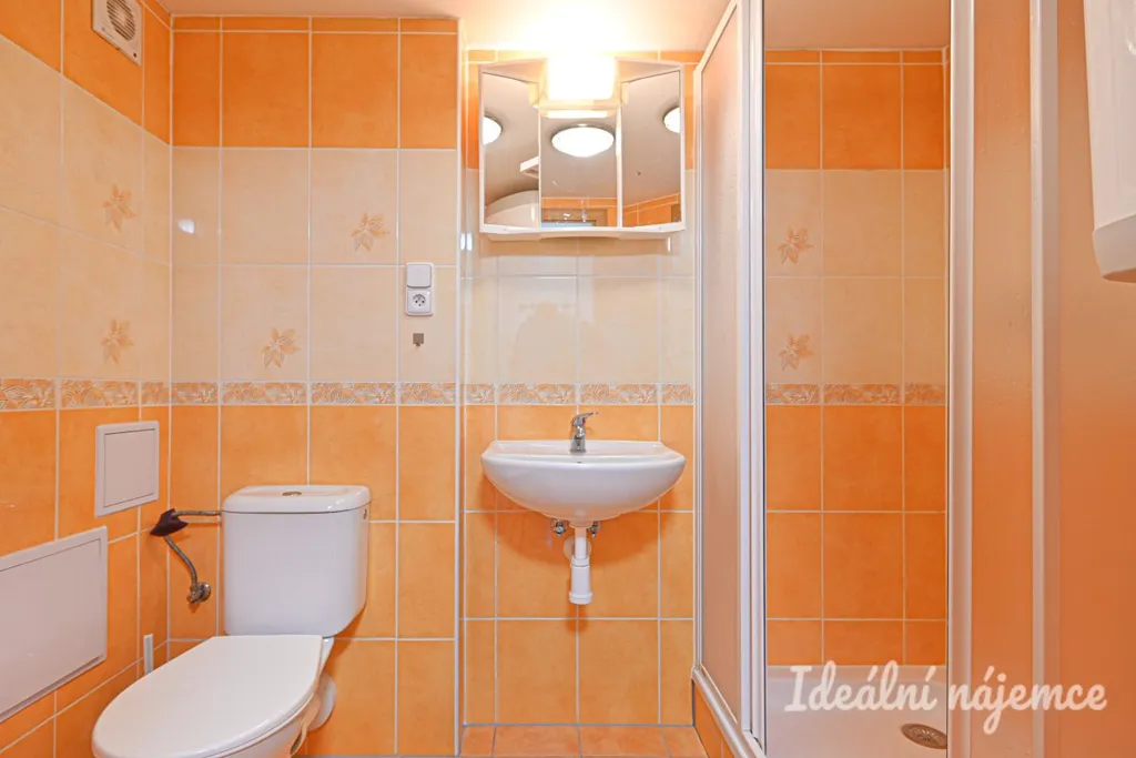 Dispozice 1+kk nabízí prakticky řešený obytný prostor s šikovně odděleným kuchyňským koutem a vyvýšenou ložnicí. Koupelna je zařízena sprchovým koutem, umyvadlem a toaletou.