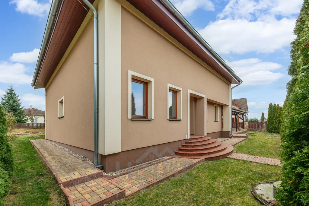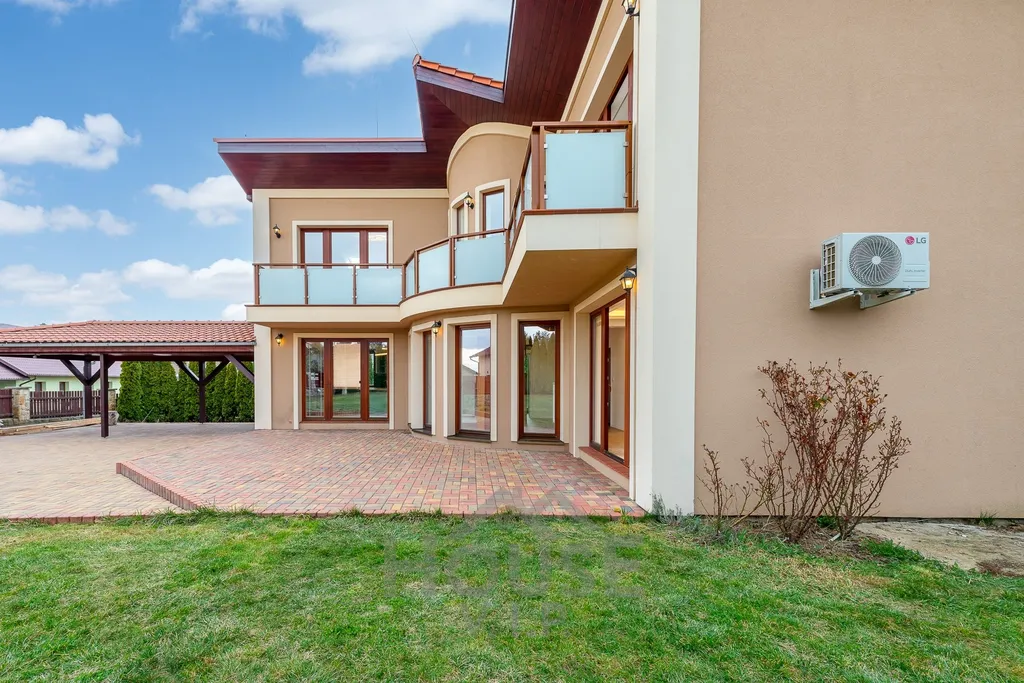 Klimatizovaný dům disponuje vnitřní užitnou plochou 200 m² a je situován na prostorném, pečlivě udržovaném pozemku o velikosti 812 m².