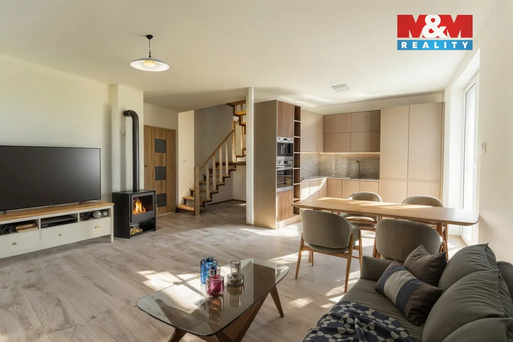 Dispozice domu poskytuje pohodlné bydlení pro rodinu – otevřený obývací prostor s kuchyňským koutem, tři samostatné ložnice, pracovnu, dvě koupelny s WC a technickou místnost. Nemovitost je postavena s důrazem na energetickou úspornost a kvalitní materiály, což se příznivě promítá do nízkých provozních nákladů.