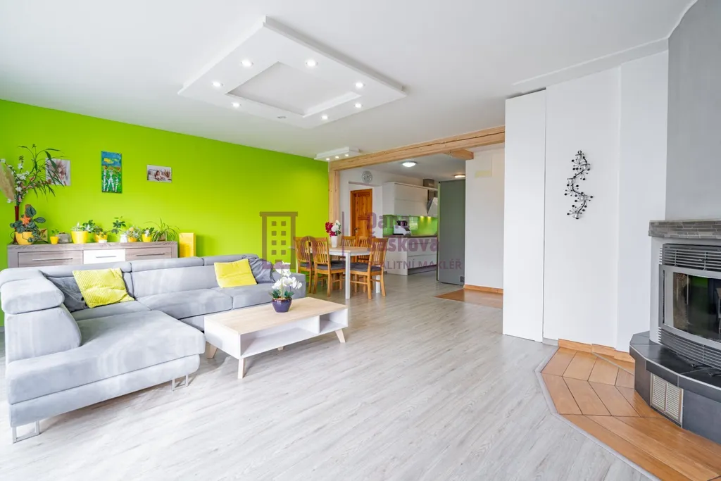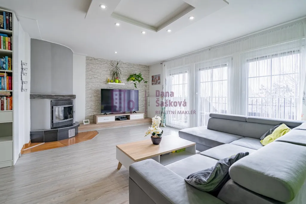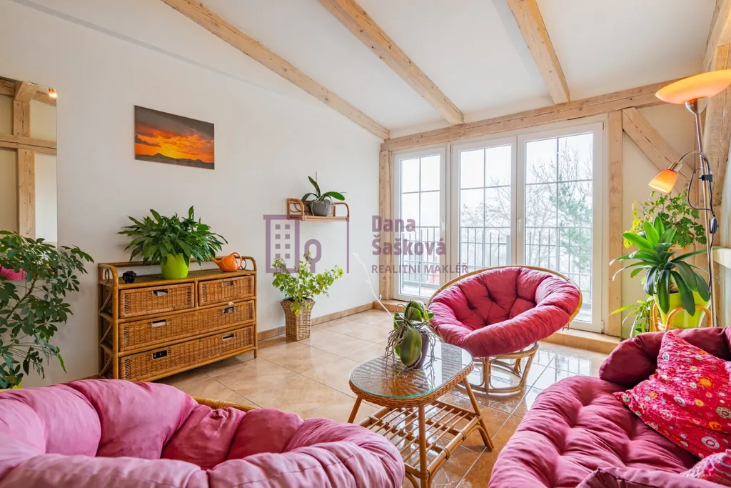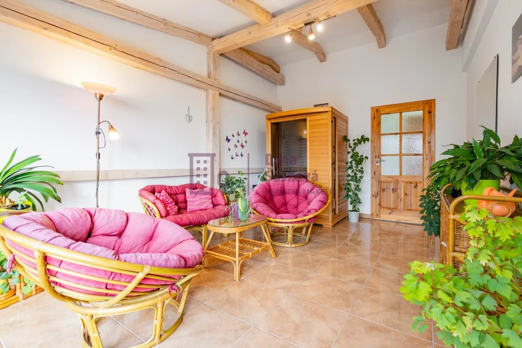 Obytná část s dispozicí 7+kk o ploše 181 m² + terasa 12 m2 nabízí velkoryse pojatý centrální prostor s obývákem a kuchyňským koutem, 4 ložnice, pracovnu, koupelnu se sprchovým koutem i vanou, další samostatnou toaletu, spíž, komoru a odpočinkový pokoj se saunou.