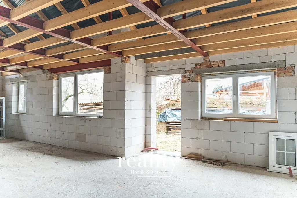 Na rovinatém pozemku o výměře 223 m² se nachází dům ve fázi uzavřené hrubé stavby, což znamená obrovskou úsporu času, energie i starostí. Základy, konstrukce i zastřešení už máte hotové — stačí navázat a dokončit bydlení tak, aby odpovídalo vašemu stylu i potřebám.