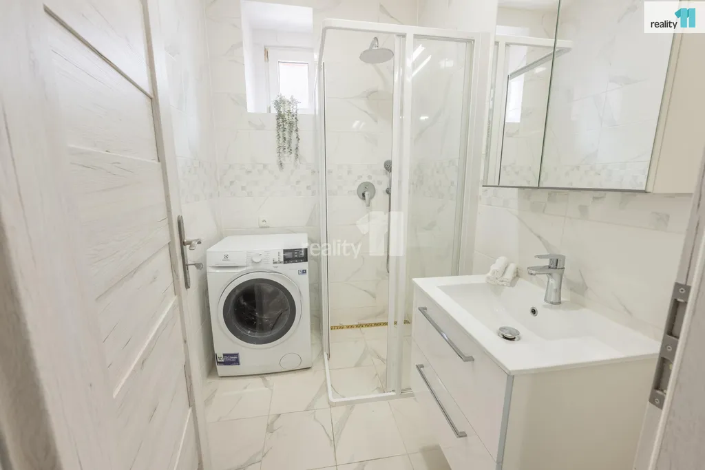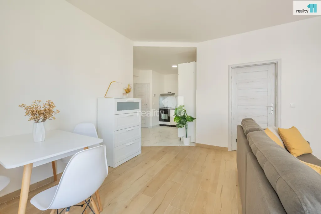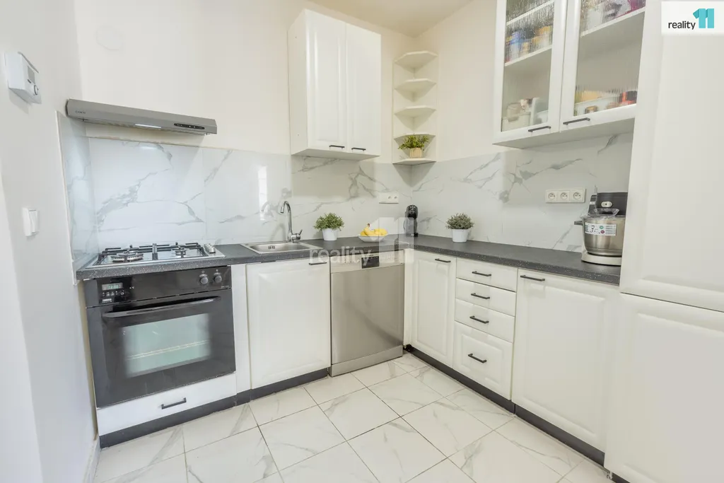 Byt dostal novou dispozici: novou předsíň s kuchyňským koutem s kuchyňskou linkou s vestavěnou lednicí, myčkou a plynovým sporákem, obývací pokoj, ložnici, koupelnu a samostatné WC. Vznikl tak vzdušný, otevřený prostor, interiér působí svěže a nadčasově. Světlé tóny a promyšlené řešení vytváří příjemnou atmosféru. Kuchyňská linka v bílém provedení působí elegantně a snadno ji sladíte s vlastním stylem.