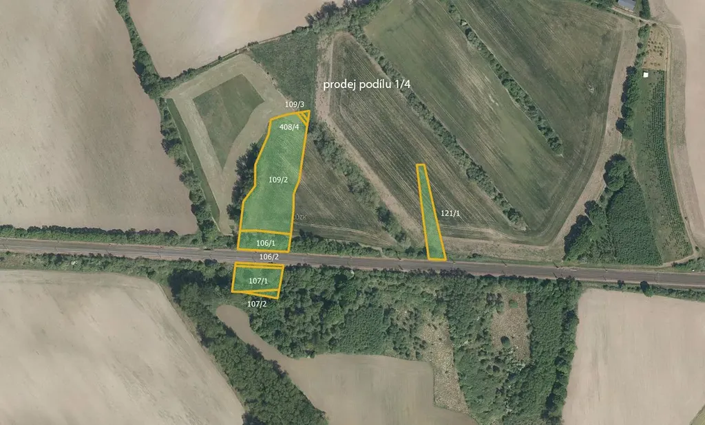 Majitel prodává uvedené pozemky pouze jako celek! V souhrnné ceně je ovšem zohledněna přítomnost spoluvlastnických podílů.