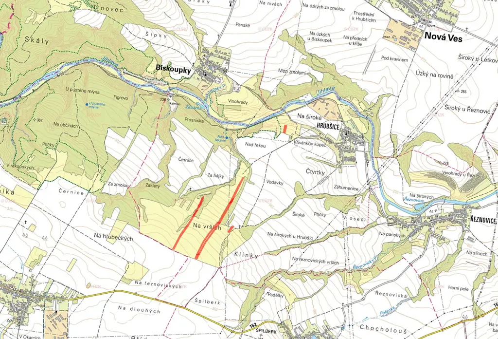 Předmětem prodeje je vlastnictví na celkem 14 parcelách zapsaných na LV 426 v KÚ Hrubšice.