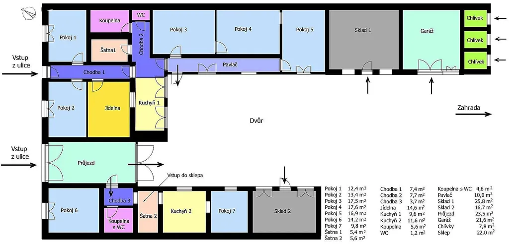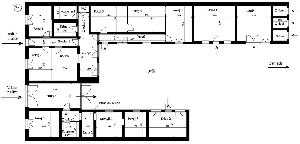 Jedná se o přízemní, řadový dům se zahradou, průjezdem do zahradního traktu. RD se dvěma oddělenými bytovými jednotkami o dispozici 6+1, 2+1. Tenhle prostorný dům , je správnou volbou pro velkou rodinu, k pronájmu, investice, podnikání. Celková plocha pozemku činí 1 239m² , zastavěná plocha a nádvoří je 889m², užitná plocha je cca 184m², zahrada je 350m².