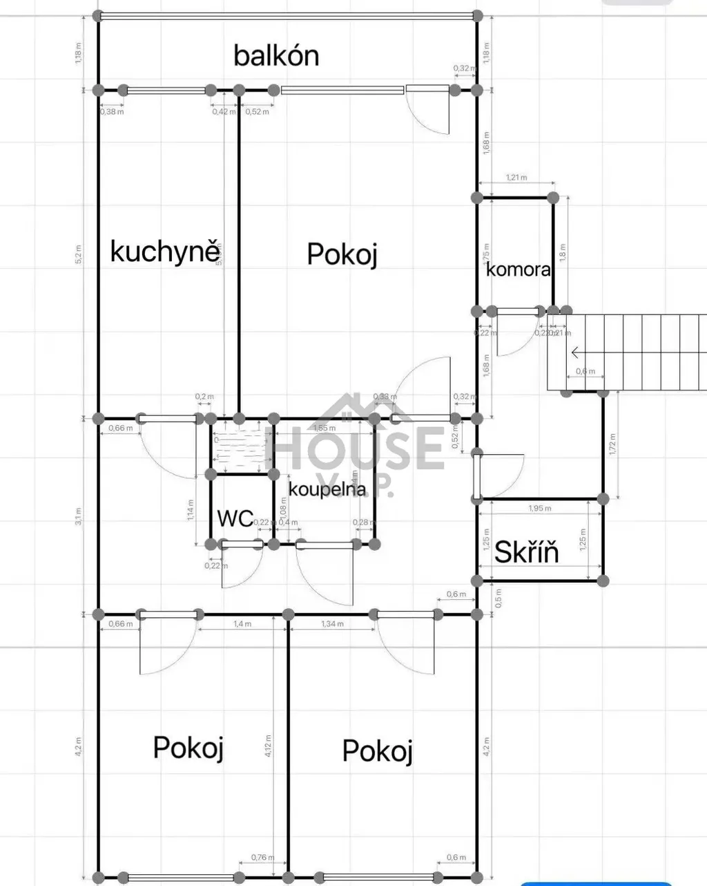 Byt je orientován na sever a jih, je příjemně světlý a situovaný v nejvyšším patře, což zajišťuje klid a soukromí bez sousedů nad vámi. V roce 2020 prošel kompletní rekonstrukcí. Dům je ve velmi dobrém stavu (nový výtah, kamerový systém, videotelefon, plánované zateplení).