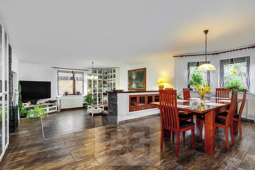Dům s dispozicí 6+2 má celkovou výměru 262m2 situovaný na obdélníkové oplocené parcele o ploše 2.154m2 s udržovanou okrasnou zahradou. Po vstupu do domu se ocitneme v předsíni, ze které je přístup do prostorné kuchyně s vestavěnými spotřebiči a praktickou spíží, na kterou navazuje obývací pokoj, kde dominuje krb s výměníkem, jež se obsluhuje ze zadní části, kde je zimní zahrada s přímým vstupem na zahradu. V levé části domu jsou pak 2 ložnice, pracovna, koupelna se sprchovým koutem, samostatné wc, technická místnost a šatna. Dřevěným schodištěm se dostaneme do druhého podlaží, které bylo v roce 2020 nově vybudované (nová okna, zateplení, atp.), kde je ložnice, velký pokoj s biokrbem, koupelna s vanou a záchodem a kuchyně. Toto podlaží nabízí možnost vícegeneračního bydlení nebo např. využití jako kancelář. Vytápění zajišťuje elektrokotel se zásobníkem na vodu a výše uvedený krb s výměníkem. Dům je napojen na obecní vodovod a kanalizaci, na pozemku se nachází také vlastní studna využívaná k zavlažování.
