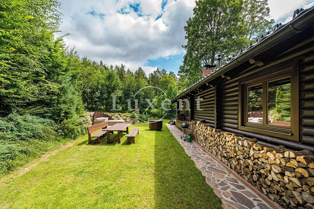 Srub byl postaven v r. 2010 erudovanou firmou a je evidován jako rodinný rekreační objekt. Je usazen uprostřed pozemku ve vyvýšené poloze, což mu dodává vznešený ráz a rozhled ve velmi příjemné okolní krajině. Všechny použité materiály jsou čistě přírodní, z masivního dřeva včetně kuchyně a nábytku. Promyšlená odborně založená a udržovaná zahrada se vzácnými dřevinami a vzrostlými stromy pak nabízí řadu zákoutí s vlastní atmosférou – terasy kolem domu s posezením pro venkovní stolování, špičkovou vířivku, útočiště pod stromy s houpací sítí nebo designovou saunu s posezením, ochlazovací kádí a rustikální sprchou. V intimním prostoru zahrady za domem je kamenná terasa s posezením, grilem a plně vybavenou venkovní kuchyní.