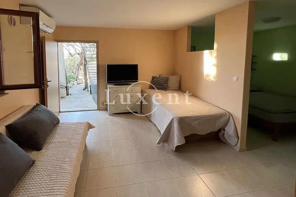 Dům se rozkládá na pozemku o velikosti 410 m² a nabízí obytnou plochu 190 m² rozdělenou do dvou podlaží. Disponuje čtyřmi samostatnými bytovými jednotkami, z nichž každá má vlastní vchod – ideální řešení pro vícegenerační bydlení, přátele nebo turistický pronájem. Každé patro je vybaveno prostornou terasou s výhledem na moře.