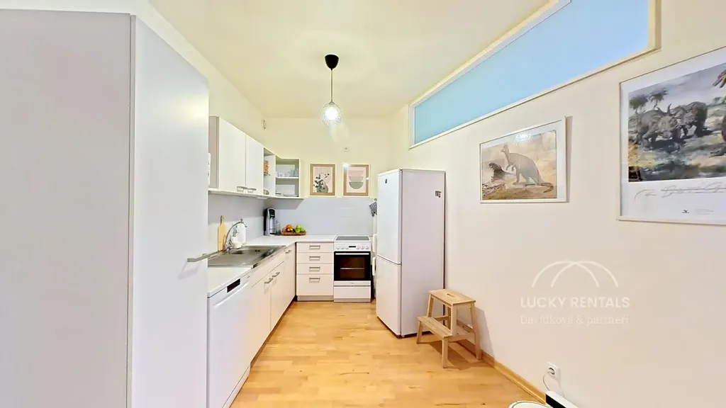 Parkování: K bytu je možné si pronajmout garážové stání za příplatek 1.500 Kč/měsíc, případně lze parkovat v rezidenčních zónách přímo před domem.