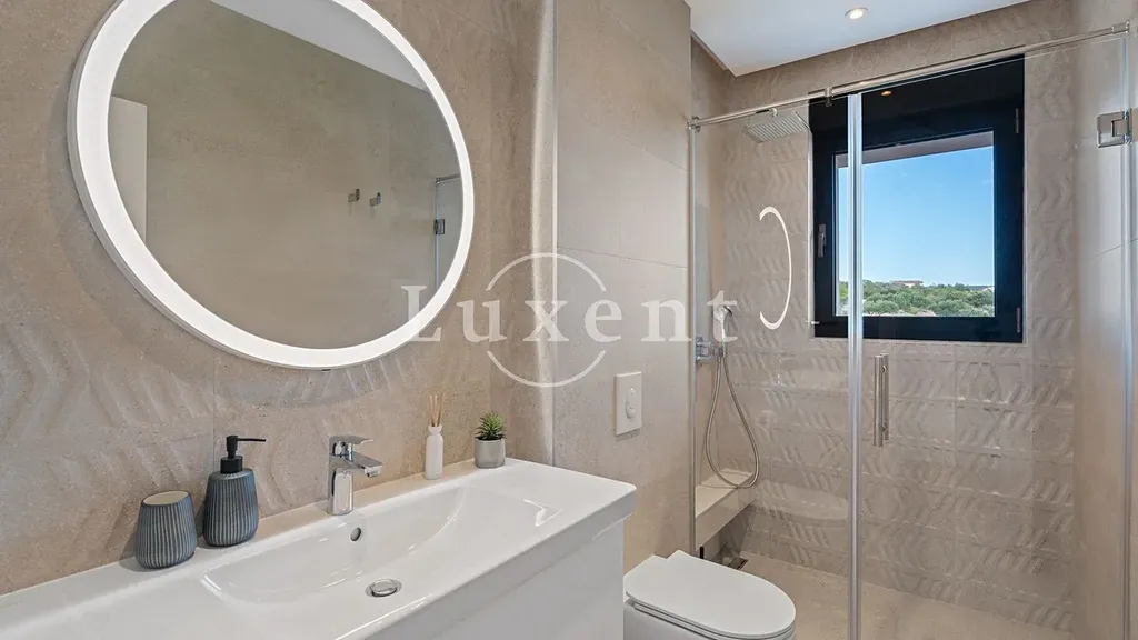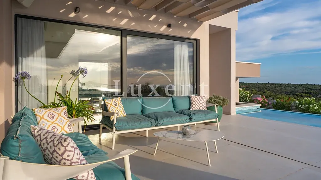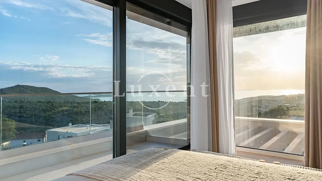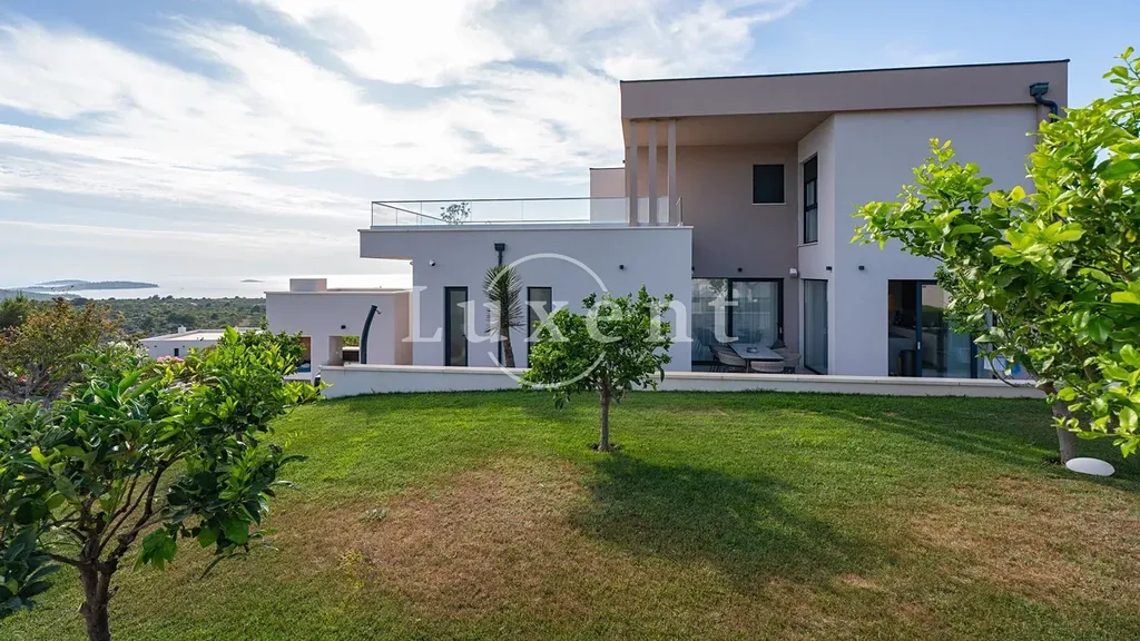 Nabízíme k prodeji exkluzivní luxusní vilu s panoramatickým výhledem na moře, na malém kopci nad malebným městem Primošten. Tato moderní vila, která se rozkládá na dvou podlažích, nabízí nejen nádherné výhledy, ale i vysoký standard vybavení, díky kterému se stává ideálním místem pro ty, kteří hledají komfort, soukromí a eleganci.