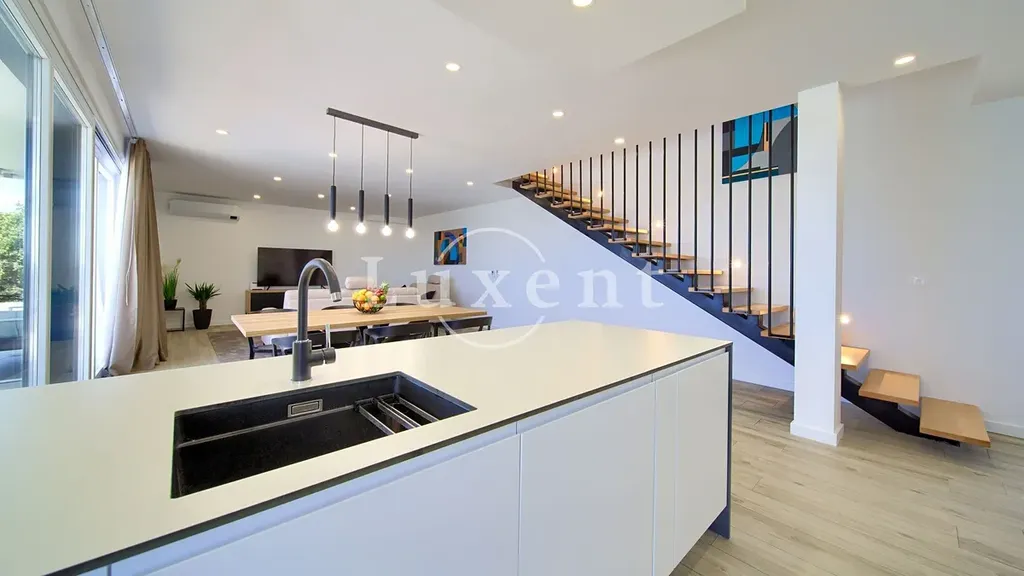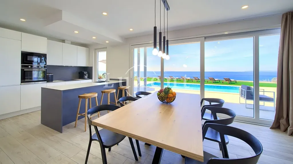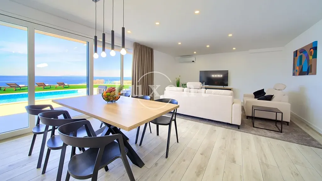Nabízíme k prodeji moderní luxusní vilu situovanou na vyvýšeném a klidném místě s nerušeným výhledem na moře a okolní nedotčenou přírodu. Tato elegantní nemovitost nabízí kombinaci vysokého komfortu, špičkových materiálů a sofistikovaných technologií, a představuje tak výjimečnou příležitost pro náročné klienty hledající jedinečné bydlení v harmonii s přírodou.