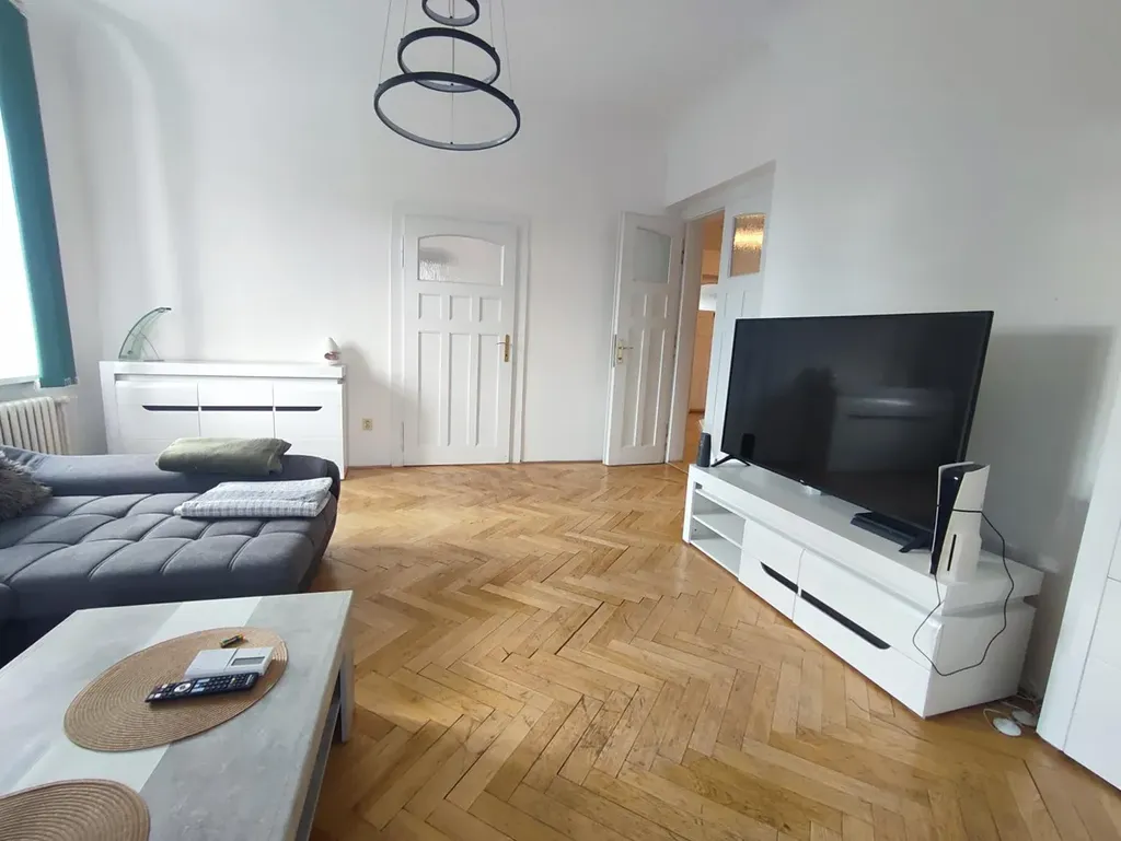 Byt je ve 2. patře krásné vily. Vchod do jednotlivých místností je z prostorné chodby (haly), kde jsou 4 pokoje z toho jednen velký vkodný jako obývací. Součástí bytu je prostorná kuchyň, WC a sprchový kout, vana.Byt je vybaven datovou sítí, podlahy parketové a dlažba, topení a ohřev vody samostatným plynovým kotlem. Parkovací místo ve dvoře. Bydlení v této lokalitě zaručuje klid a soukromí.