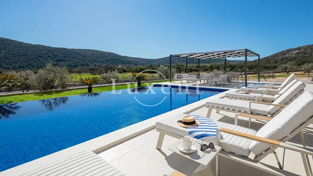 Na prodej je luxusní vila s moderním designem, která se nachází v klidné oblasti nedaleko chorvatského města Trogir. Díky svému elegantnímu zpracování, špičkovému vybavení a důrazu na detail představuje ideální volbu pro náročné klienty hledající komfortní zázemí pro letní dovolenou či investici do turistického pronájmu.