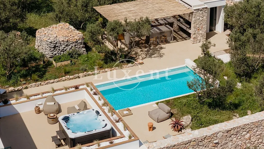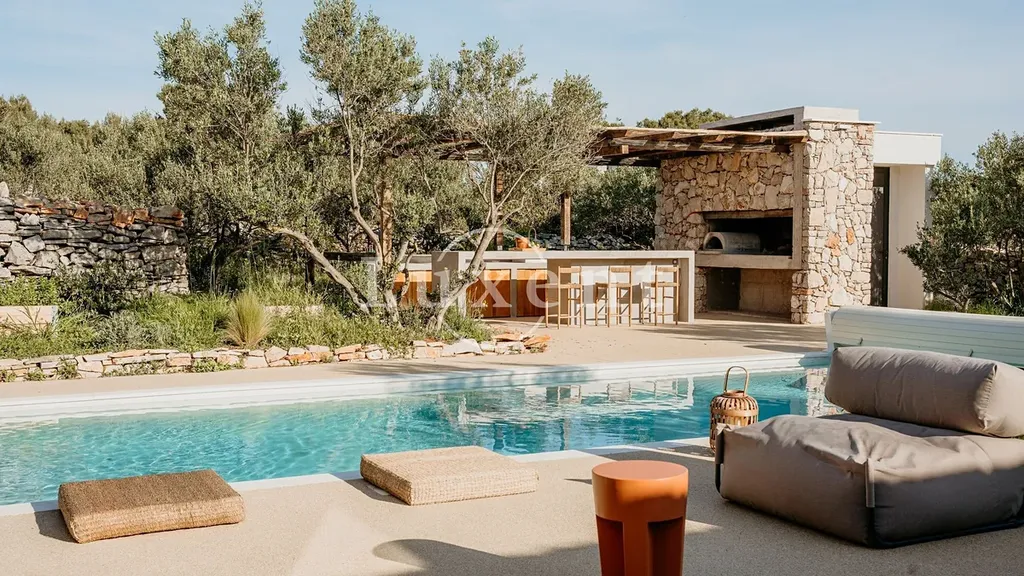 Tato moderní vila na ostrově Šolta je ideální volbou pro ty, kteří hledají exkluzivní nemovitost v srdci Dalmácie – místo, kde se snoubí luxus, příroda a mořská pohoda v dokonalé rovnováze.