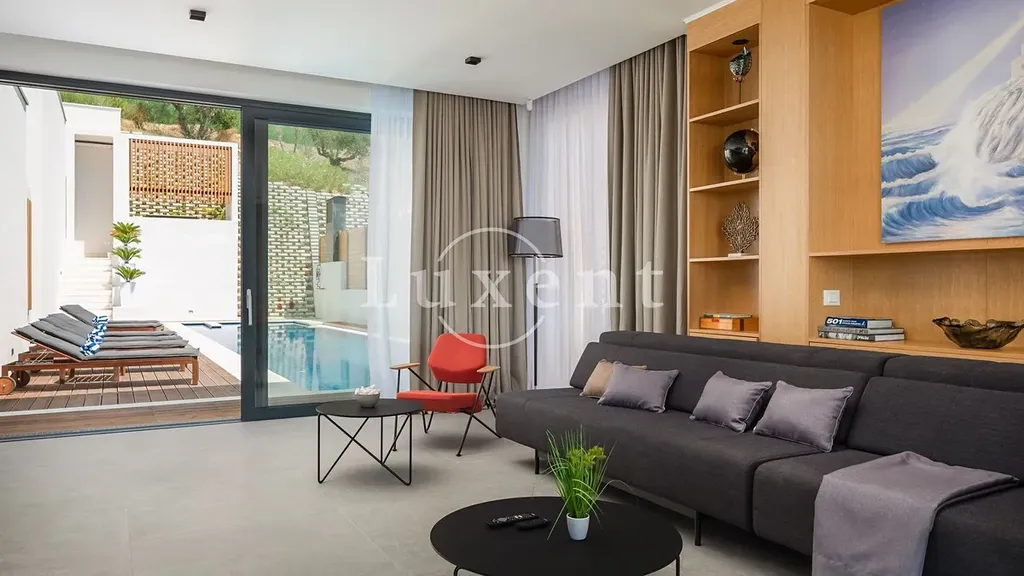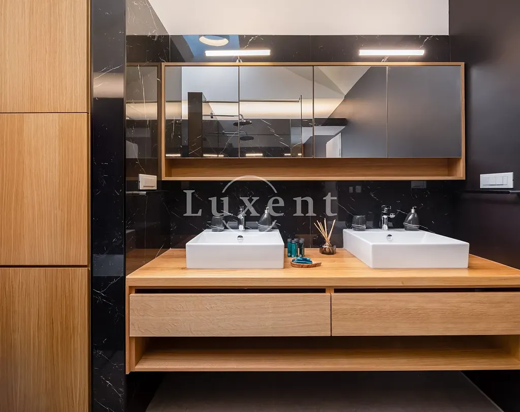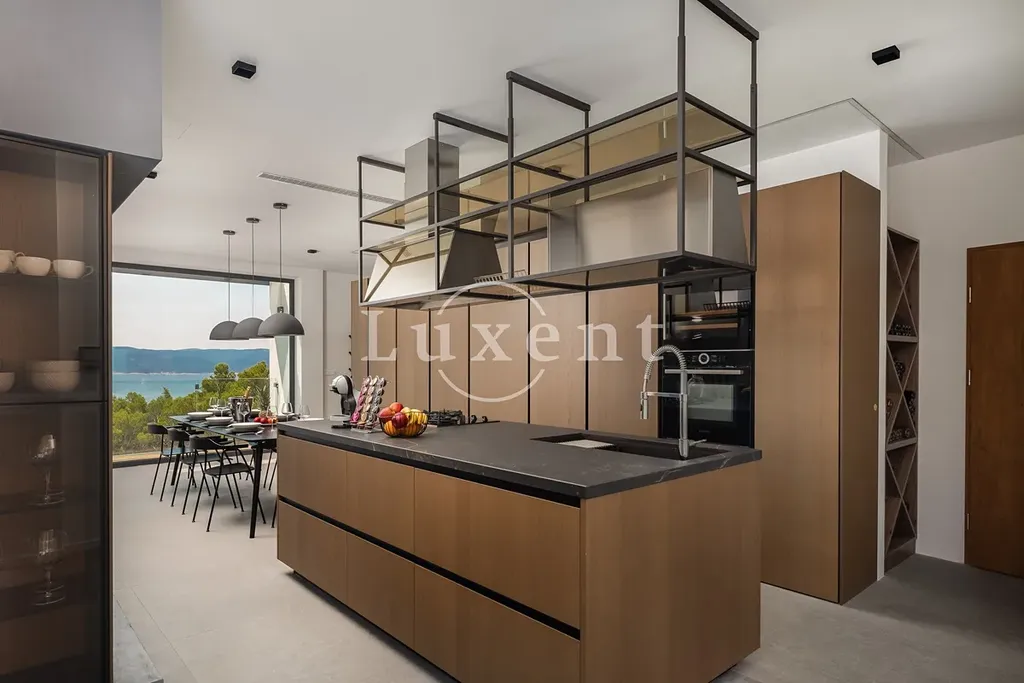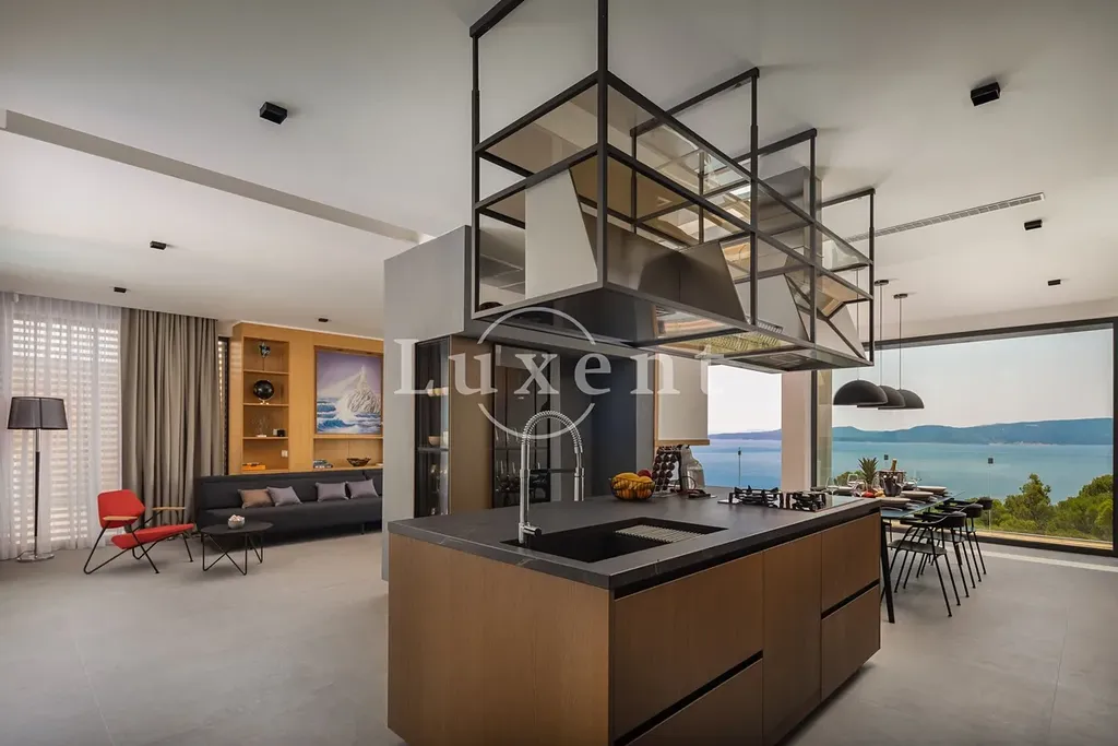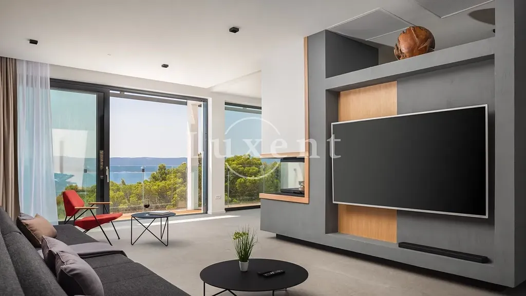 Nabízíme k prodeji atraktivní luxusní vilu s dechberoucím výhledem na moře, která se nachází v klidné oblasti nedaleko vyhledávaného letoviska Omiš. Tato výjimečně navržená vila o celkové obytné ploše 289 m2 se rozprostírá na čtyřech úrovních – přízemí, dvou nadzemních podlažích a střešní terase – a je vybavena řadou prémiových prvků pro maximální komfort a moderní životní styl.