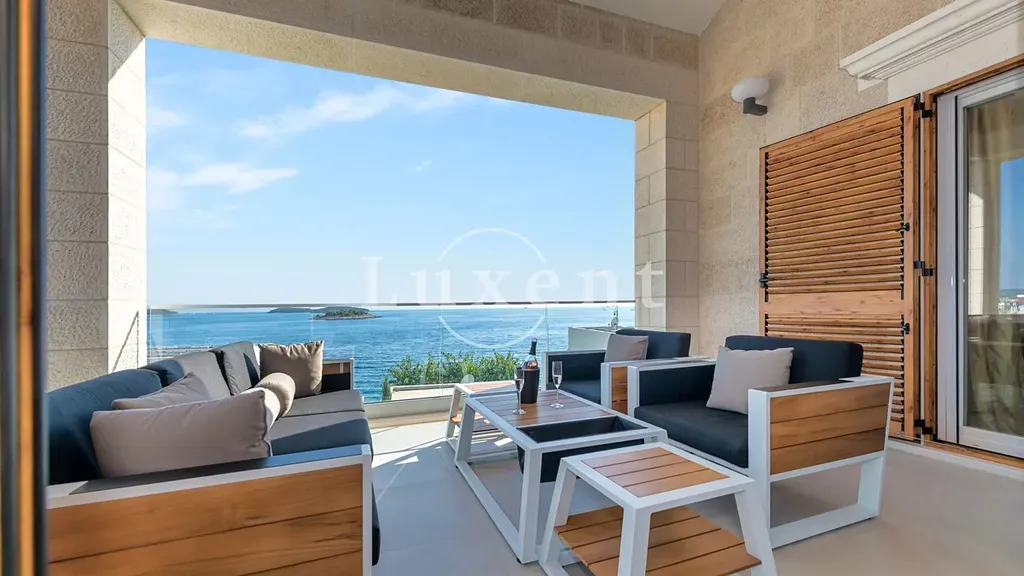 Na prodej je nově postavená kamenná vila s přepadovým bazénem, která se nachází jen 50 metrů od moře v rezidenční části Rogoznice, obklopena luxusními nově postavenými vilami. Celá vnější fasáda vily je vyrobena z 3 druhů ručně tesaného kamene, díla nejlepších kameníků z ostrova Brač, což vile dodává jedinečný a tradiční vzhled.