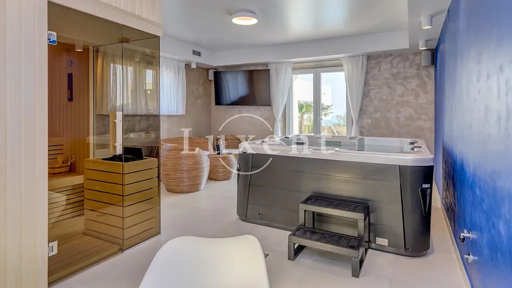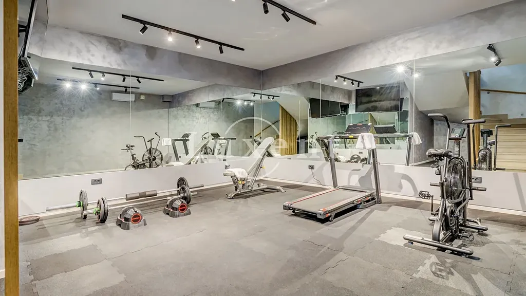 Vila se rozkládá na 5 podlažích, která jsou navržena tak, aby splňovala všechny požadavky moderního luxusního bydlení. V suterénu se nachází posilovna a místnost pro společenská setkávání s krbem. Tento prostor je také vybaven relaxační zónou se saunou a vířivkou. Ze suterénu je přístup na dvůr, kde se nachází krásně upravená zahrada ve středomořském stylu, prostorný bazén o rozloze 60 m2 a vlastní plochou na opalování.