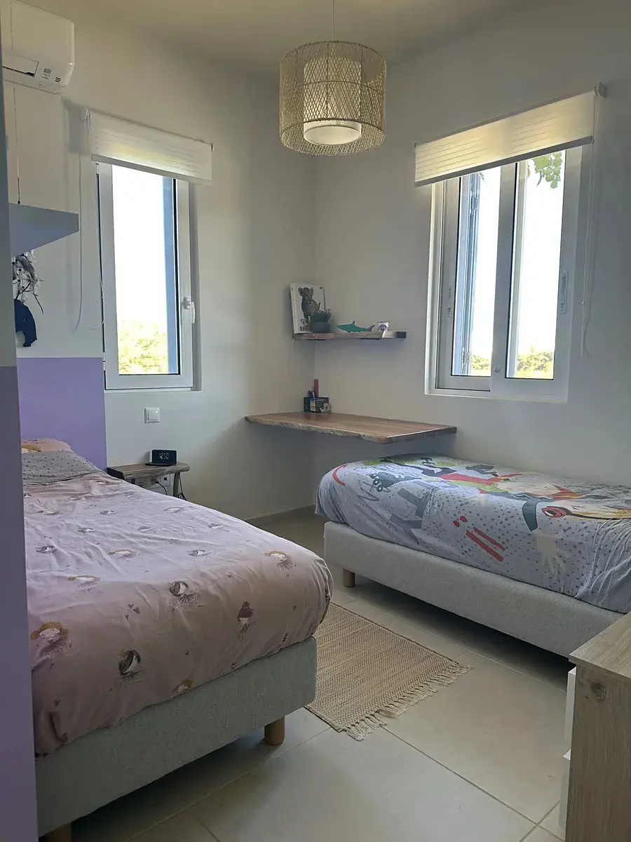 Nemovitost byla postavena v roce 2021 a nabízí moderní a příjemné obytné prostředí. Nabízí dvě prostorné ložnice, dvě koupelny a světlý obývací prostor s otevřeným prostorem, který spojuje kuchyň, jídelnu a obývací pokoj. Společný bazén dále umocňuje nabízený životní styl.