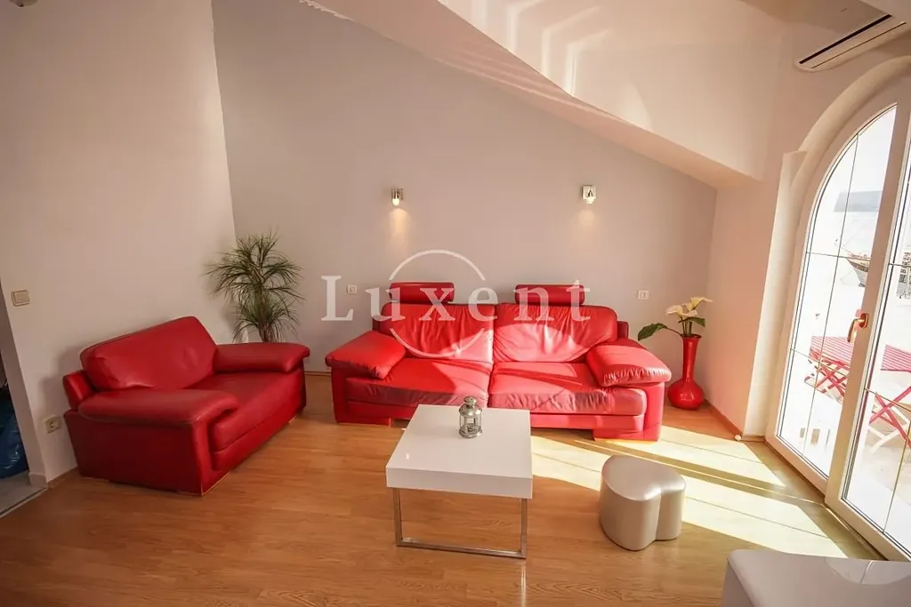 V přízemí domu se nacházejí tři samostatné jednopokojové apartmány. Tyto jednotky jsou vhodné jak pro krátkodobý turistický, tak i pro dlouhodobý pronájem. V prvním patře je situován prostorný apartmán, který disponuje velkou lodžií a nabízí krásný výhled na moře. Ve druhém patře se nachází další třípokojový apartmán s přístupem na lodžii a otevřenou terasu, která poskytuje příjemný venkovní prostor k relaxaci. V podkroví je umístěn prostorný třípokojový byt s balkonem, ideální například pro rodinu.
