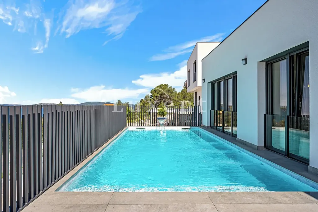Vila se rozkládá na pozemku o velikosti 581 m2 a nabízí obytnou plochu 316 m2 rozvrženou do dvou podlaží. V přízemí se nachází čtyři prostorné ložnice, každá s vlastní koupelnou, dále obývací prostor s kuchyní, samostatná koupelna, wellness a sauna. V horním patře se nachází další obývací zóna, kuchyně s jídelnou, toaleta a prádelna. Tato výjimečná nemovitost z roku 2022 spojuje špičkový design, vysoký komfort a mimořádné umístění s otevřeným výhledem na moře, který je umocněn kaskádovitou polohou domu.