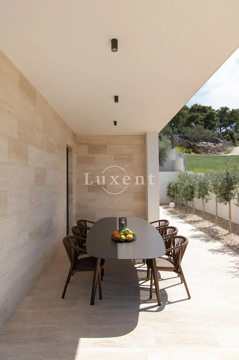Vila o rozloze 130 m2 je provedena ve velmi vysokém standardu s důrazem na kvalitu materiálů, vybavení i design. Interiér nabízí tři ložnice, dvě koupelny, technickou místnost s pračkou a sušičkou, a prostorný obývací pokoj propojený s jídelnou a terasou. Exteriér doplňuje venkovní krytá kuchyně s grilem a infinity bazén s vyhříváním a protiproudem, který umocňuje luxusní atmosféru celého prostoru. Součástí pozemku je i zahrada s plně automatickou závlahou a dekorativním LED osvětlením, kde rostou středomořské rostliny a ovocné stromy jako citrony, pomeranče a mandarinky.