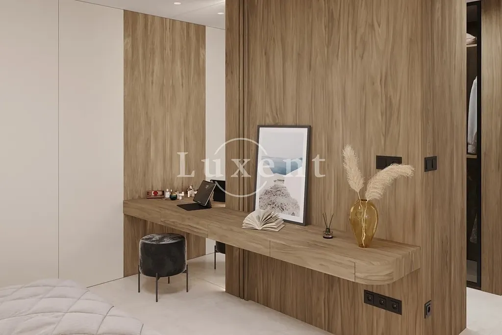 Penthouse nabízí celkovou plochu 257,47 m2 – interiér 141,57 m2, kryté terasy 49,90 m2 a otevřenou terasu 66,00 m2. Součástí ceny jsou také dvě garážová parkovací stání a sklep 16,20 m2. Byt se prodává kompletně vybavený a zařízený na klíč – od zakázkového nábytku, kuchyně se spotřebiči AEG a vinotékou až po luxusní koupelny, designové osvětlení, koberce, závěsy a moderní stínění.