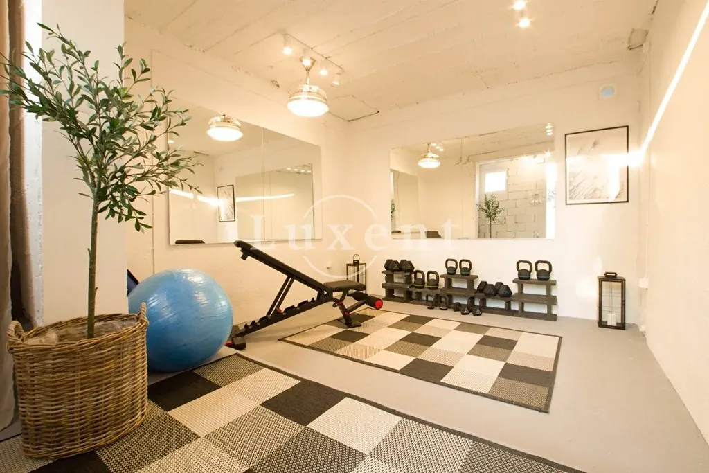 Nabízíme na prodej moderní rodinný dům v malebném městečku Rogoznica v srdci chorvatské Dalmácie, situovaný v mimořádně atraktivní lokalitě pouhých 150 metrů od moře a centra města. Nemovitost se nachází na pozemku o rozloze 530 m², který zahrnuje obytnou budovu a parkovací plochu. Dům se rozkládá na třech podlažích a nabízí tři samostatné, plně vybavené apartmány. V přízemí se nachází jednopokojový apartmán se soukromou zahradou a krytou terasou, v prvním patře dvoupokojový apartmán s prostornou terasou a výhledem na moře a v nejvyšším patře luxusní penthouse se dvěma ložnicemi, dvěma koupelnami, velkou terasou s panoramatickým výhledem na moře a vlastní posilovnou.