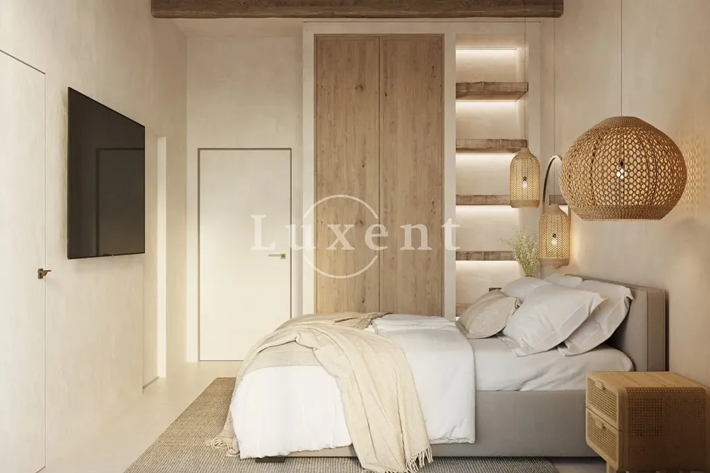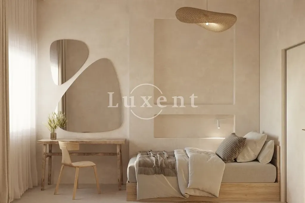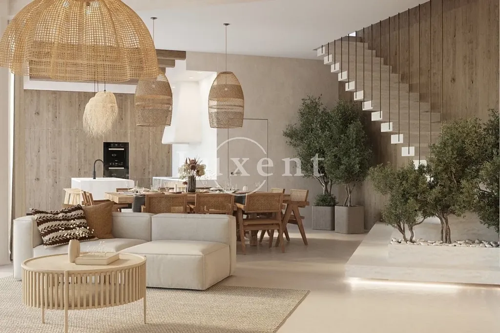 Vila je rozdělena do dvou podlaží a nabízí pět prostorných ložnic a šest moderních koupelen. Přízemí tvoří otevřený obytný prostor s kuchyní, jídelnou a obývacím pokojem s přímým výstupem na rozlehlou terasu. Součástí přízemí jsou také technické místnosti, prádelna, toaleta, posilovna, sauna a vnitřní bazén s protiproudem. V suterénu se nachází prostor pro odpočinek a zábavu s venkovní kuchyní, grilem, krytou letní jídelnou a venkovním kinem.