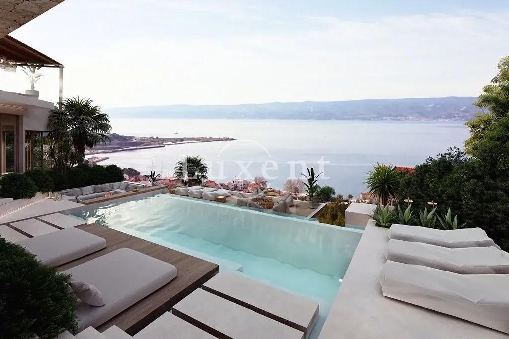 Nabízíme k prodeji luxusní vilu v pobřežním městě Omiš v Chorvatsku, která spojuje sofistikovaný moderní design s prvky dalmatinské tradice. Nově postavená nemovitost má 441 m² obytné plochy a leží na pozemku o rozloze 1082 m², jen 350 metrů od moře, s nádherným, nezastíněným výhledem na moře a okolní ostrovy.