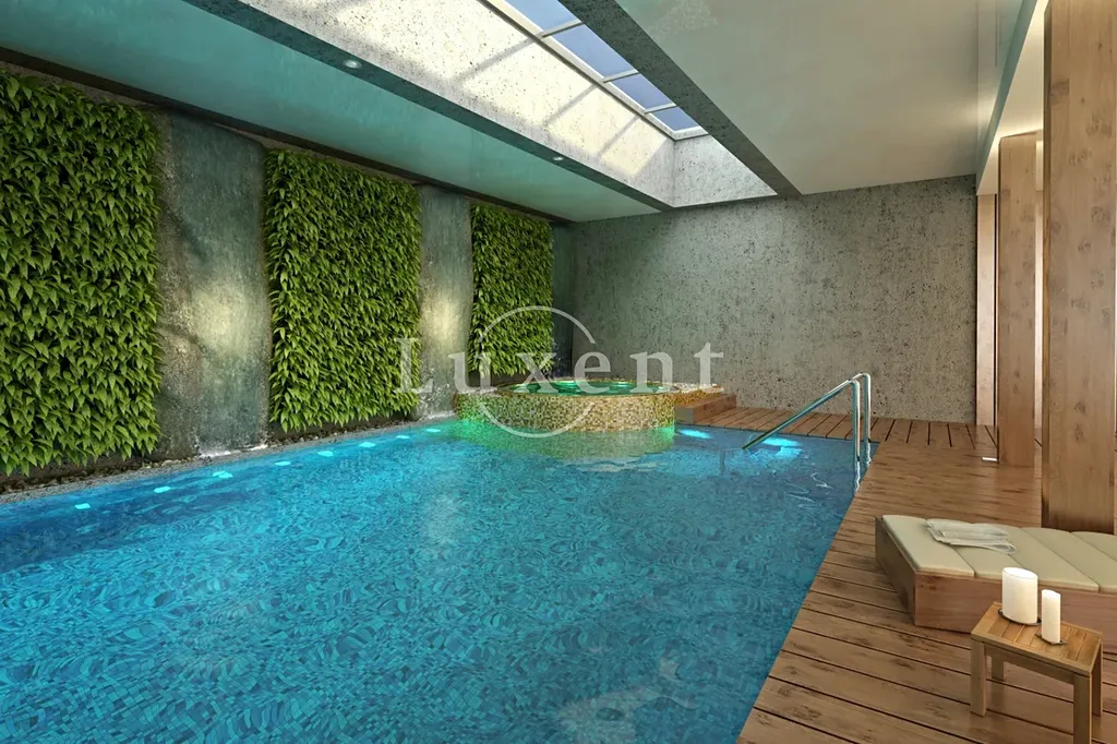 Věž, relaxační centrum i garáž jsou ve stavu shell and core.