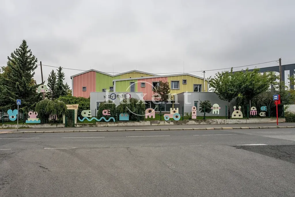 První nadzemní podlaží je přístupné samostatným vstupem ze zahrady, což umožňuje oddělené fungování jednotlivých částí objektu. Tato část obsahuje další dvě učebny s příslušenstvím a také samostatnou bytovou jednotku 2+kk o výměře 49 m². Ta může sloužit jako služební byt, kanceláře nebo zázemí pro další aktivity. Budova je situována uprostřed oploceného pozemku a ze všech stran ji obklopuje pečlivě upravená zahrada. Ta byla navržena s důrazem na bezpečnost i herní potřeby venkovních aktivit. Vzrostlá zeleň a uspořádání zahrady vytvářejí příjemné mikroklima a přirozený prostor pro dětské hry i odpočinek. K nemovitosti náleží tři parkovací místa.